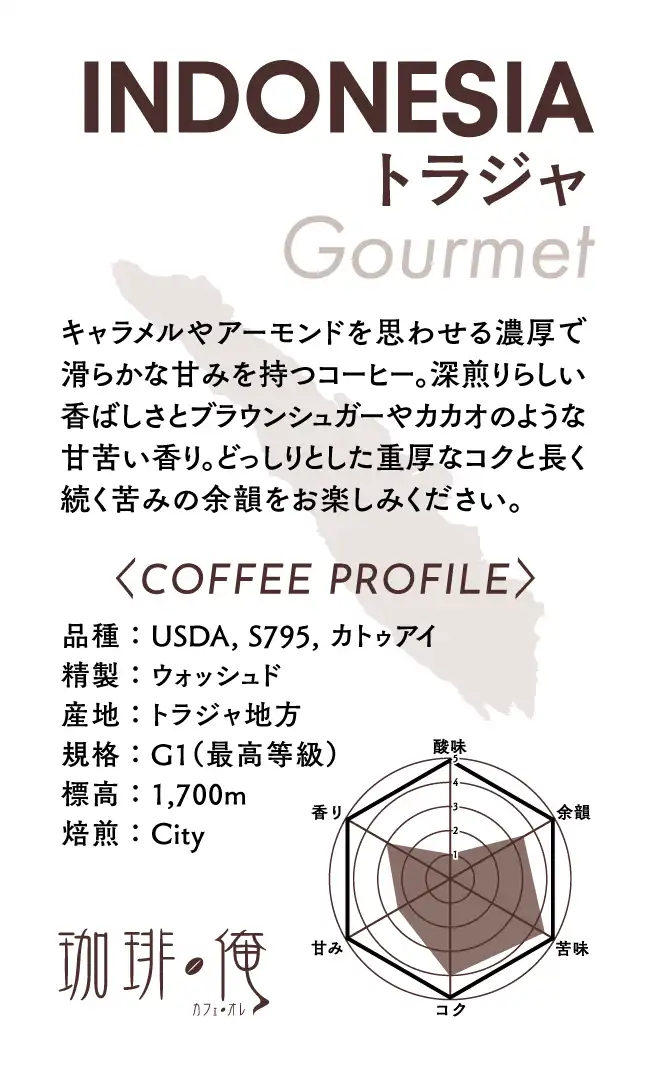 トラジャは、インドネシア・スラウェシ島で収穫される珈琲豆です。