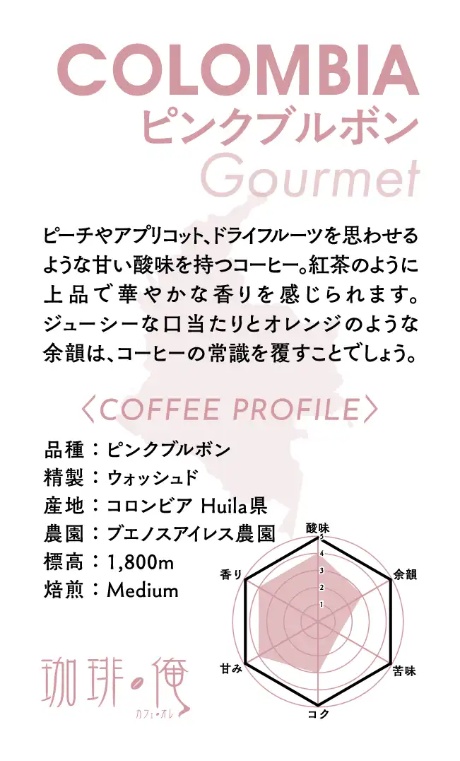 ピンクブルボンは、レッドブルボンとイエローブルボンの自然交配によって生まれた、非常に希少なアラビカ種です。